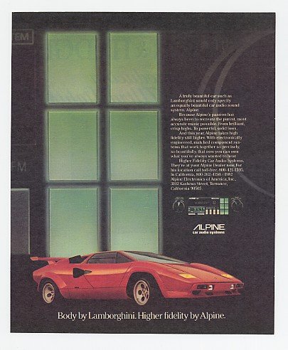 1982 Red Lamborghini Alpine Car Audio Print Ad (16052) Best